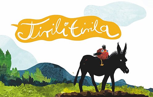 Der kleine Vogel folgt ihm. Und der Esel freut sich darüber. Er mag fremde Sprachen.